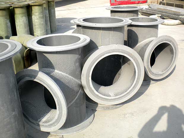 玻璃鋼三通采用手糊成型,先制作相應(yīng)規(guī)格的玻璃鋼管道,然后將玻璃鋼管道組合成一定結(jié)構(gòu),管與管連接的部分用玻璃鋼原材料進(jìn)行粘接、加強(qiáng)。